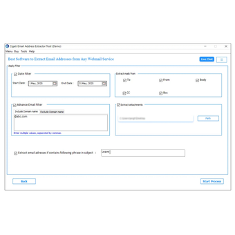 Cigati Email Address Extractor is a reliable and efficient software designed to help users extract email addresses from a wide variety of sources, including documents, websites, emails, and local files. The tool employs advanced scanning algorithms to ensure precise and accurate extraction while automatically eliminating duplicate entries. It supports bulk processing, making it an ideal solution for businesses, marketers, and professionals who need to collect large volumes of email addresses quickly and efficiently. With its intuitive and user-friendly interface, even non-technical users can perform email extraction tasks without any hassle. Additionally, the software ensures data security and preserves the integrity of all extracted emails, making it a trustworthy choice for personal and professional use. By using Cigati Email Address Extractor, users can save significant time, streamline their workflow, and enhance their productivity in managing email marketing campaigns or contact databases.